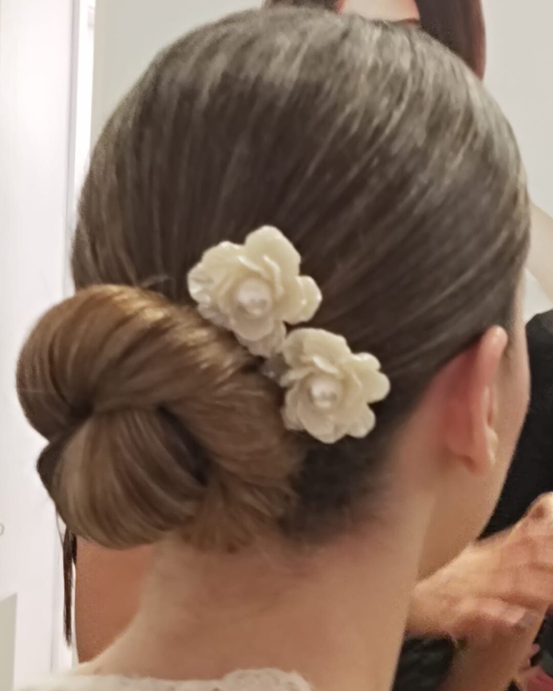 Por otro lado, los recogidos clean o pulidos siguen siendo sinónimo de sofisticación. Coletas bajas estructuradas o moños perfectamente definidos ofrecen una imagen refinada, ideal para ceremonias más clásicas o minimalistas. Estos estilos destacan por su durabilidad y por mantener un acabado impecable durante toda la jornada.